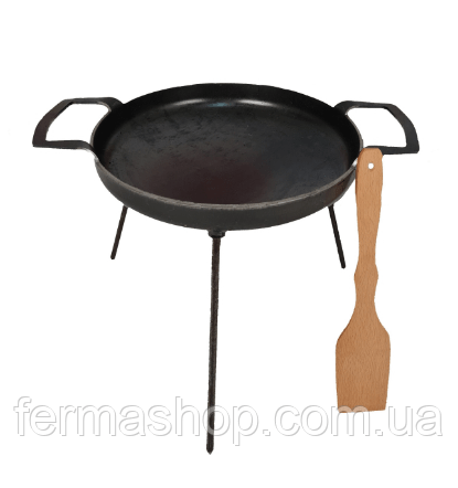 Сковорода дисковая 30 см с ножками и лопаткой без крышки