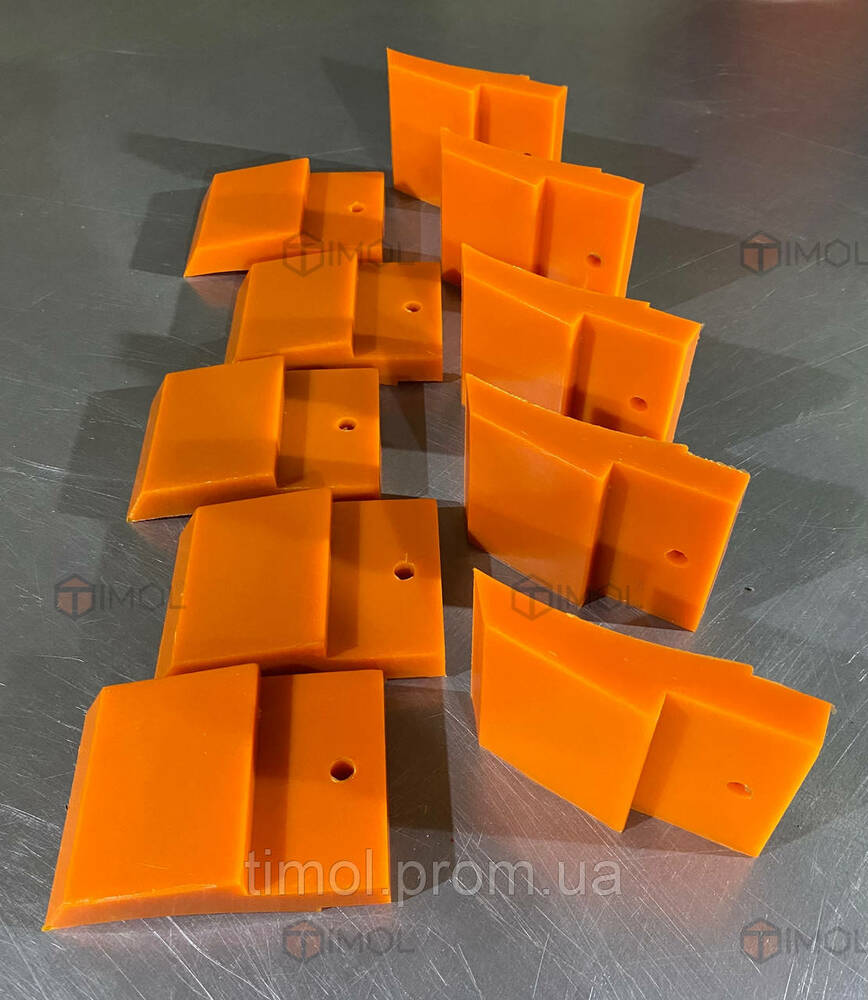 Виробництво будь-яких шкребків під замовлення з метал закладними й без, відновлення робочого шару та покриття поліуретаном вузлів і деталей промислового обладнання, зокрема валів, коліс, роликів, технологічних трубопроводів тощо.