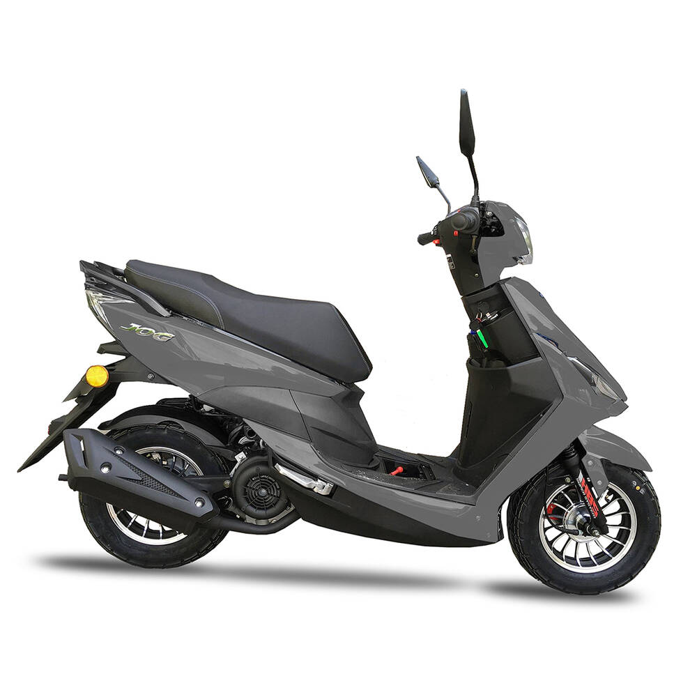 Опис Скутер FORTE JOG 80CC сірий Скутер FORTE JOG 80CC - новинка, яка поєднує в собі якісну і надійну конструкцію, сучасний зовнішній вигляд, а також доступну ціну. У моделі варто бензиновий двигун об'ємом 80 см3 з потужністю 4,5 к.с. Максимальна швидкість скутера 65 км / год. Незважаючи на свої компактні розміри, транспорт зручний не тільки для водія, але і для його пасажира. Скутер обладнаний литими дисками з хорошою стійкістю до навантажень.