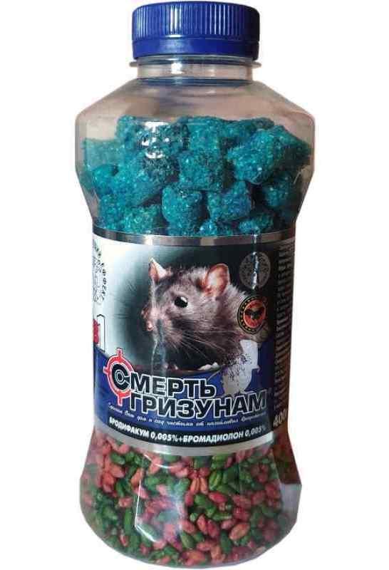 Смерть грызунам 400г микс зерно + дуплет синий - родентицидное средство в виде гранулированной приманки с привлекателем для уничтожения крыс и мышевидных грызунов в жилых и не жилых помещениях, а также на сельскохозяйственных угодьях и на приусадебных участках.