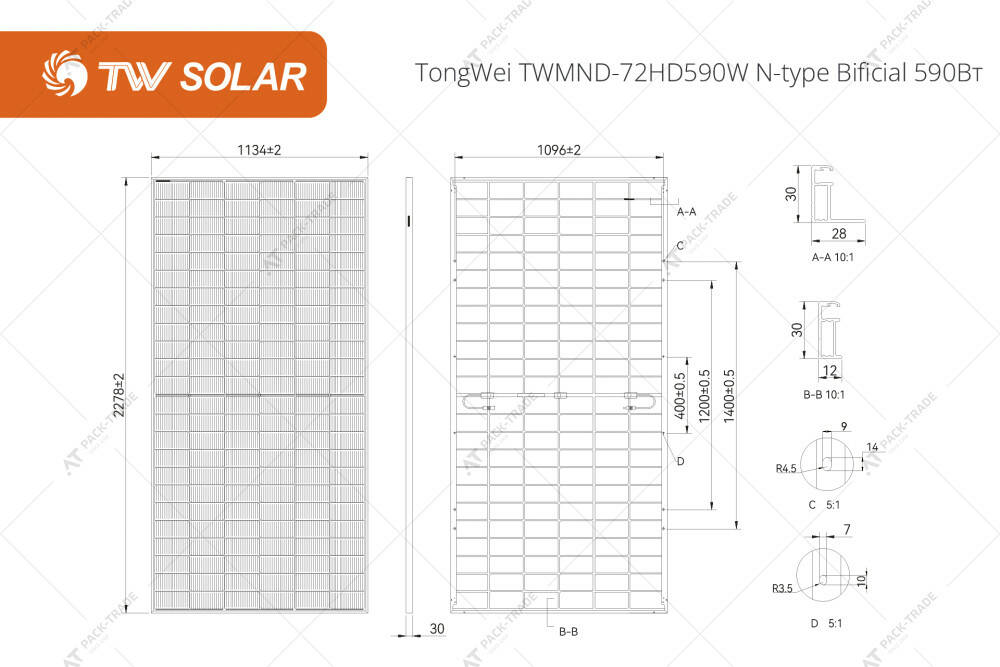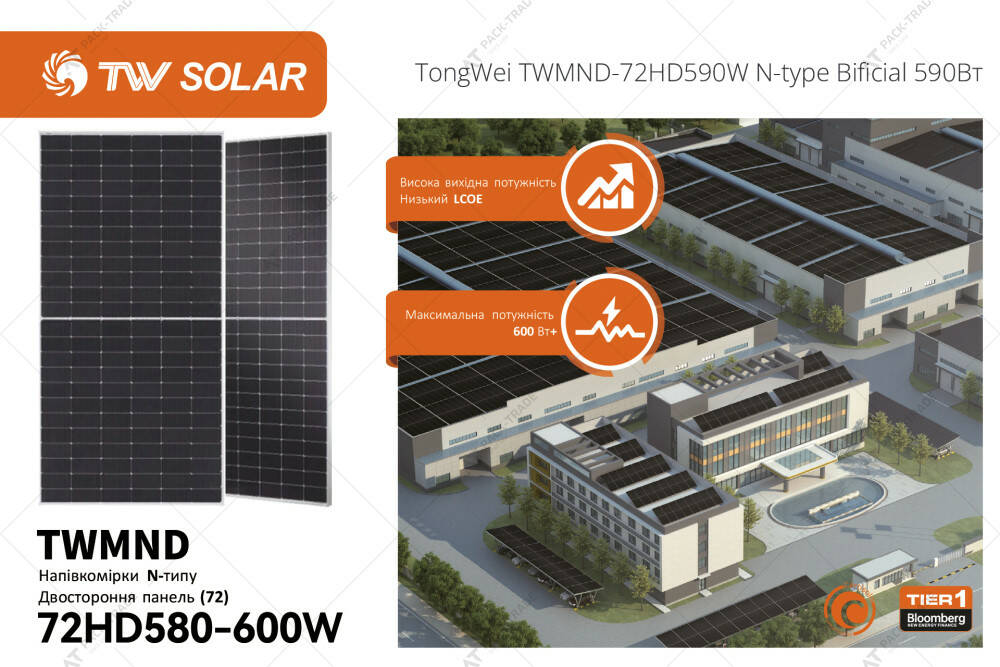 Сонячна панель TongWei TWMND-72HD590W N-type Bificial 590 Вт