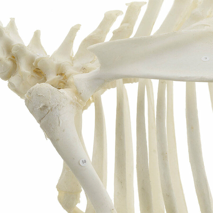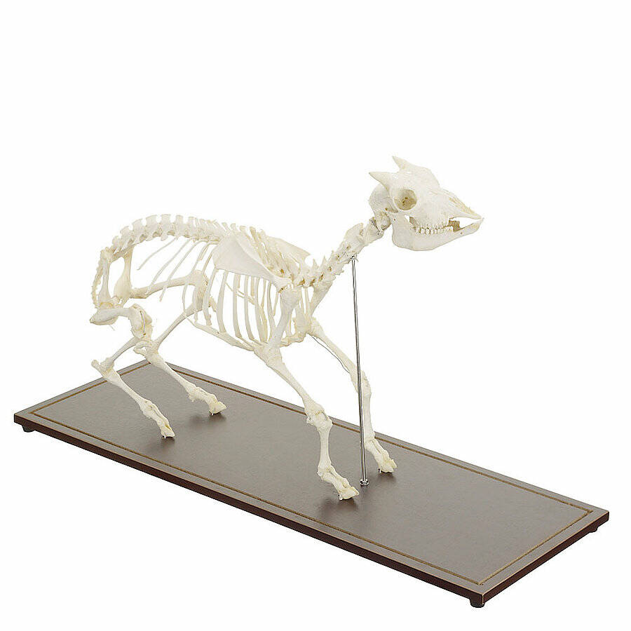 Справжня модель скелета кози використовується для вивчення, демонстрації та візуалізації детальної анатомічної будови тварин. Кістки міцно з'єднані та пронумеровані, щоб полегшити класифікацію при використанні документації, що додається.