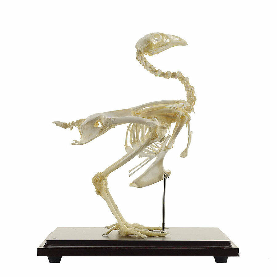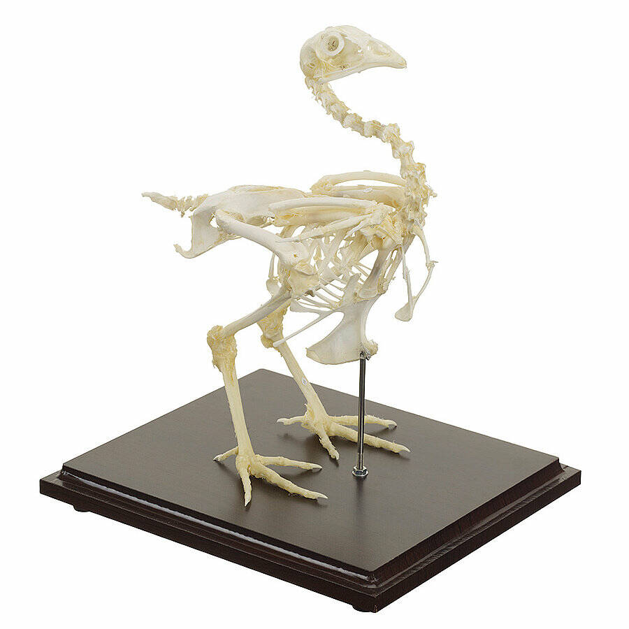 Представлена модель скелета курки складається зі справжніх кісток для найдостовірнішого представлення будови скелета домашньої птиці. Справжній скелет курки ідеально підходить для використання у ветеринарній практиці та в навчальних цілях. Чудово підходить як декор або для використання у ветеринарних дослідженнях.