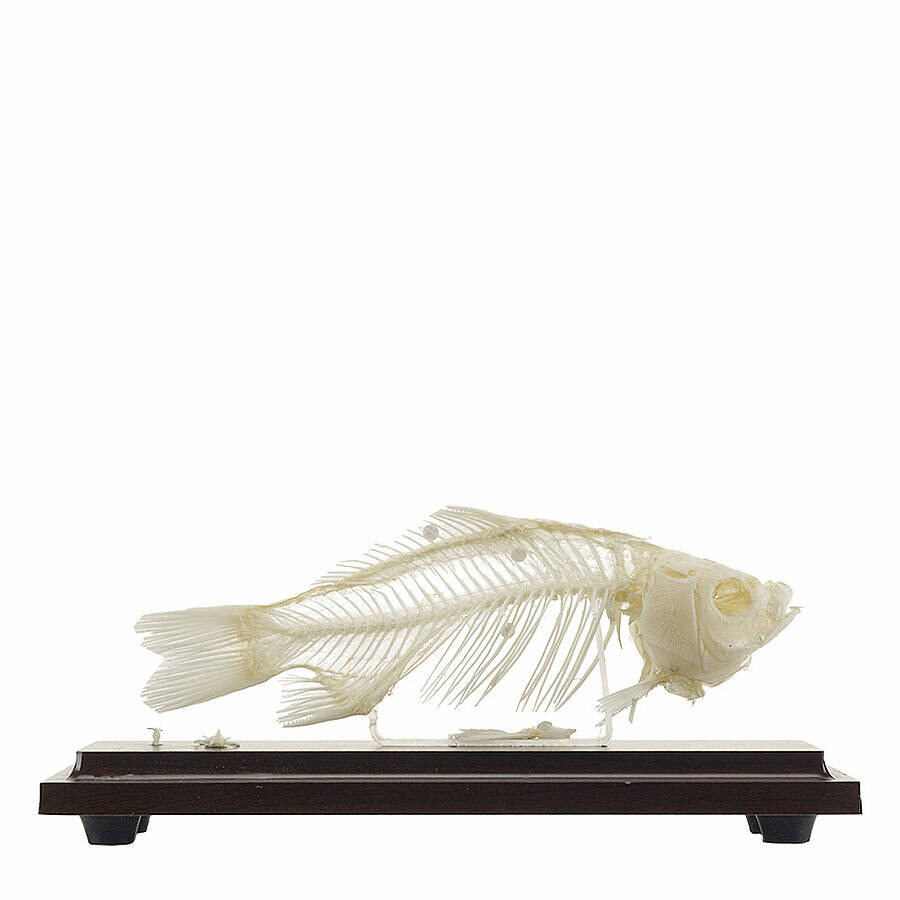 Цей зразок скелета риби складається зі 100% справжніх кісток, що дозволяє легко розпізнати навіть найдрібніші деталі. Зразок скелета риби закріплений за допомогою спеціального тримача на дерев'яній основі. Також на основі закріплені інші скелетні структури не прив'язані до основного скелету, такі як грудні плавники. Окремі риб'ячі кістки оснащені індивідуальними номерами і можуть бути ідентифіковані за допомогою документа, що додається.