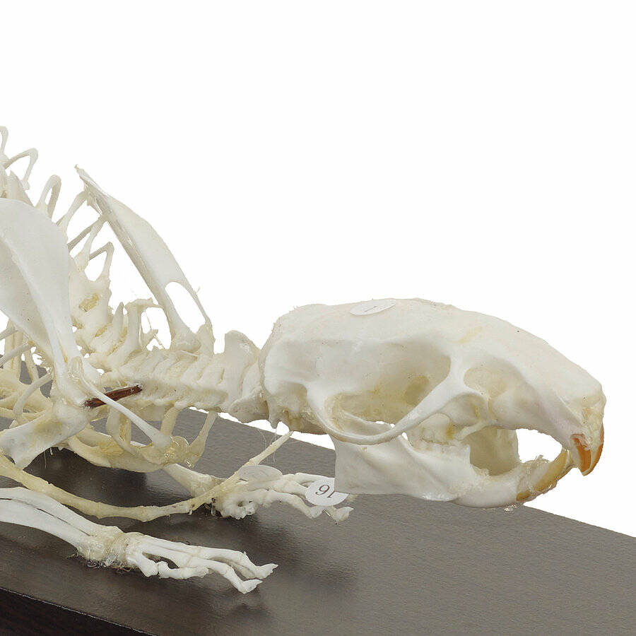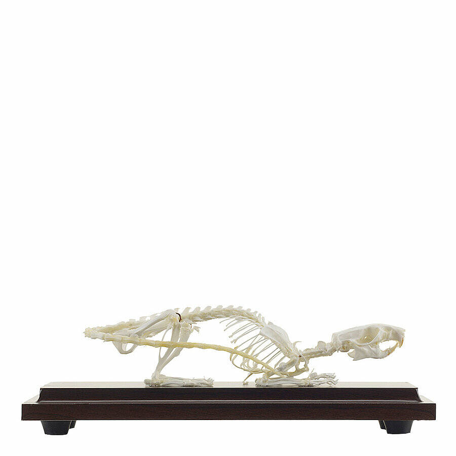 • Зразок скелета щура міцно закріплений на дерев'яній основі.