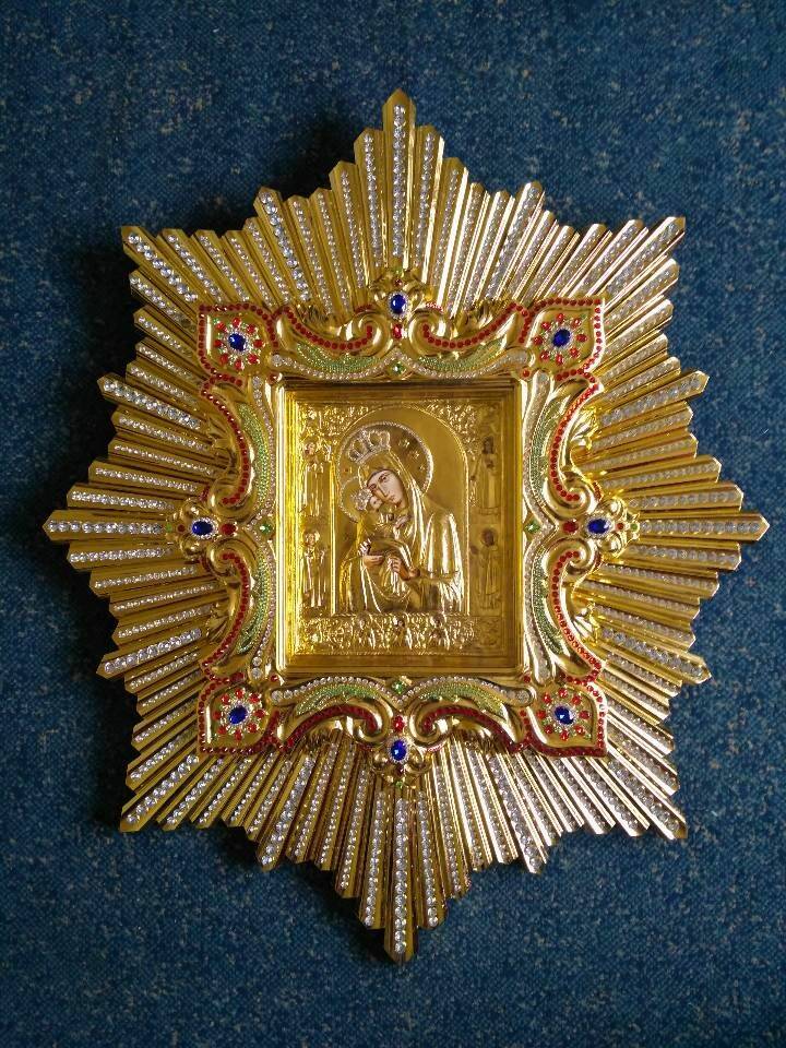 У свою чергу, люди також намагаються віддати належне образу, що позначилося і на зовнішньому вигляді спускної ікони. Вона завжди виготовляється в особливому стилі, в обрамленні сяйва восьмикінцевої зірки, прикрашена дорогоцінним камінням, перлами, золотими накладками. і не кожен храм може собі дозволити таку покупку. Ми пропонуємо не менш красиві, але більш доступні варіанти спускових ікон, а також виготовляємо їх гальванічні ікони на замовлення.