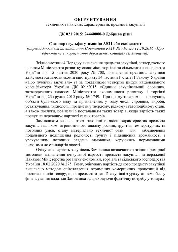 (оприлюднюється на виконання Постанови КМУ № 710 від 11.10.2016 «Про ефективне використання державних коштів» (зі змінами))