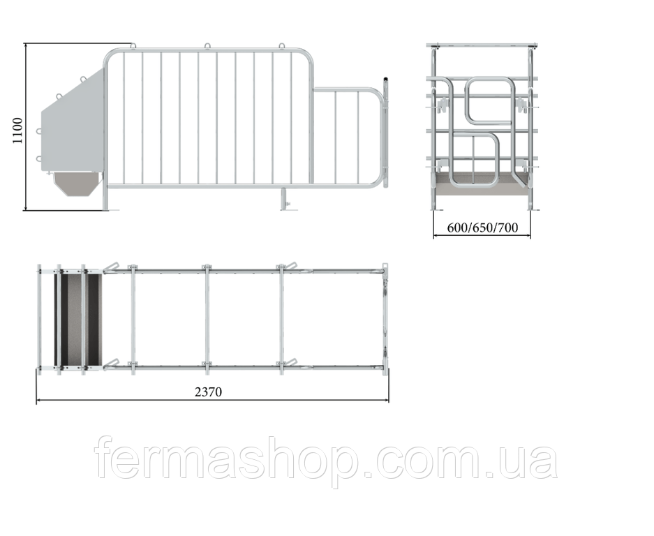 Станки сделаны: Из стальных труб и обрабатывается методом горячей гальванизации, станки изготовляются на современном оборудовании ЧПУ, кормушки изготовляются из пищевой нержавеющей стали, изготовление кормушки производиться индивидуально каждому клиенту под его размер и объём самой кормушки.