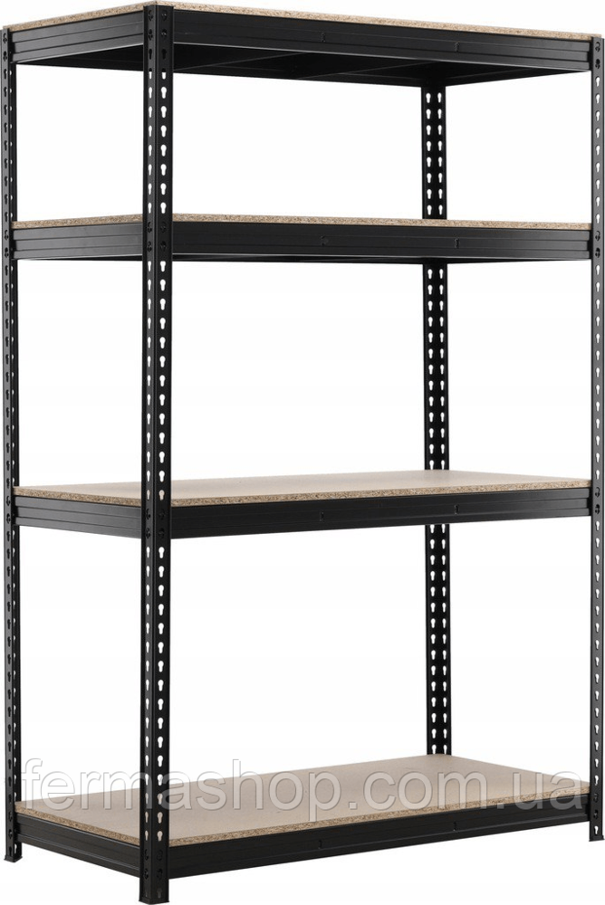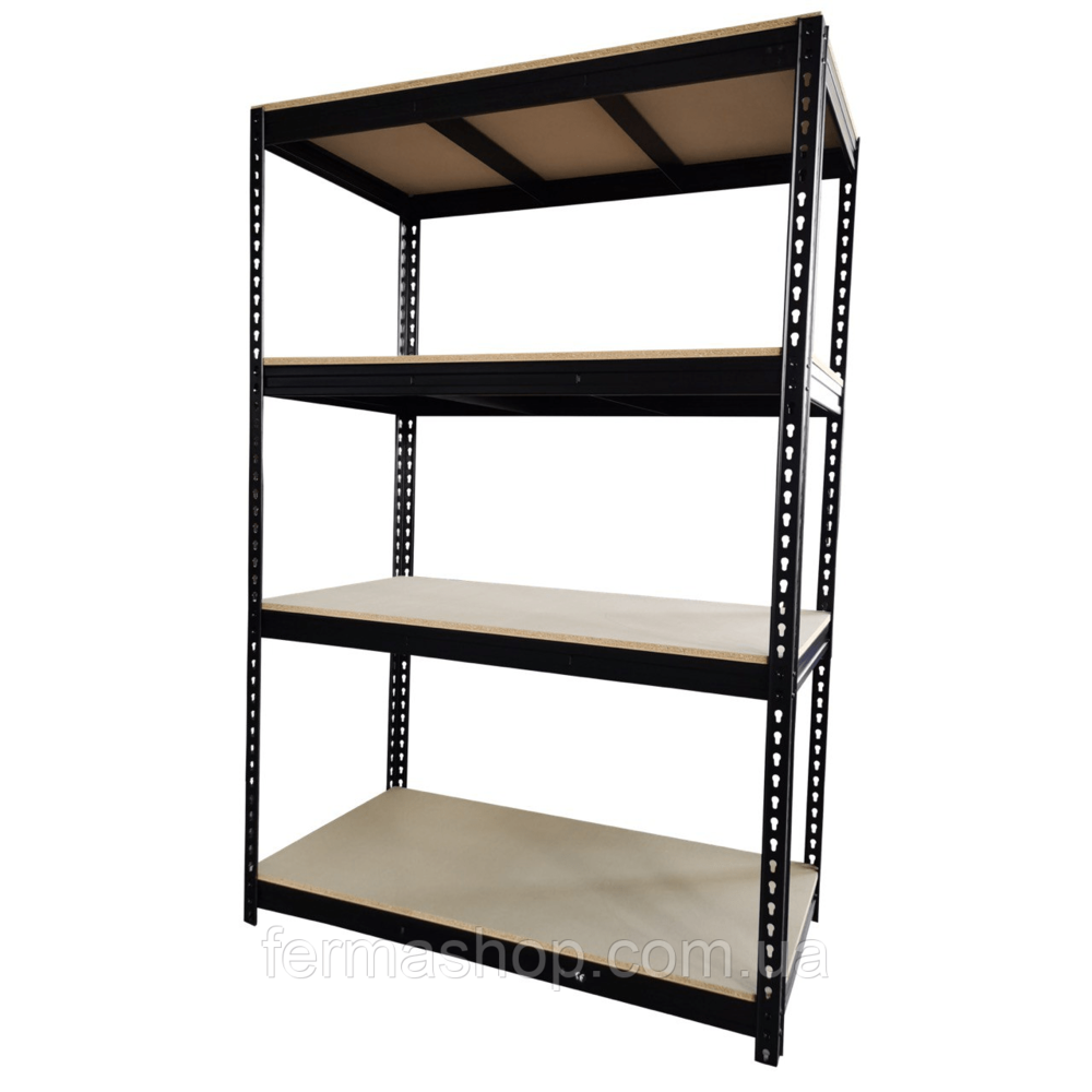 Стеллаж металлический (180 x 150 x 60 см) 4 полки, нагрузка - 500 кг на полку, Черный