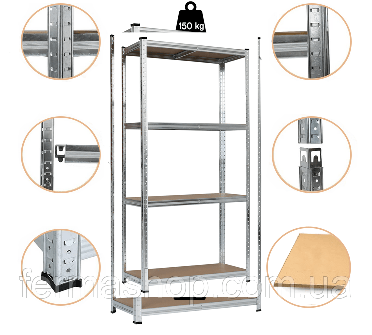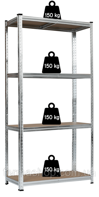 Стеллаж металлический 180х90х40 4 полки, нагрузка 150кг - на полку