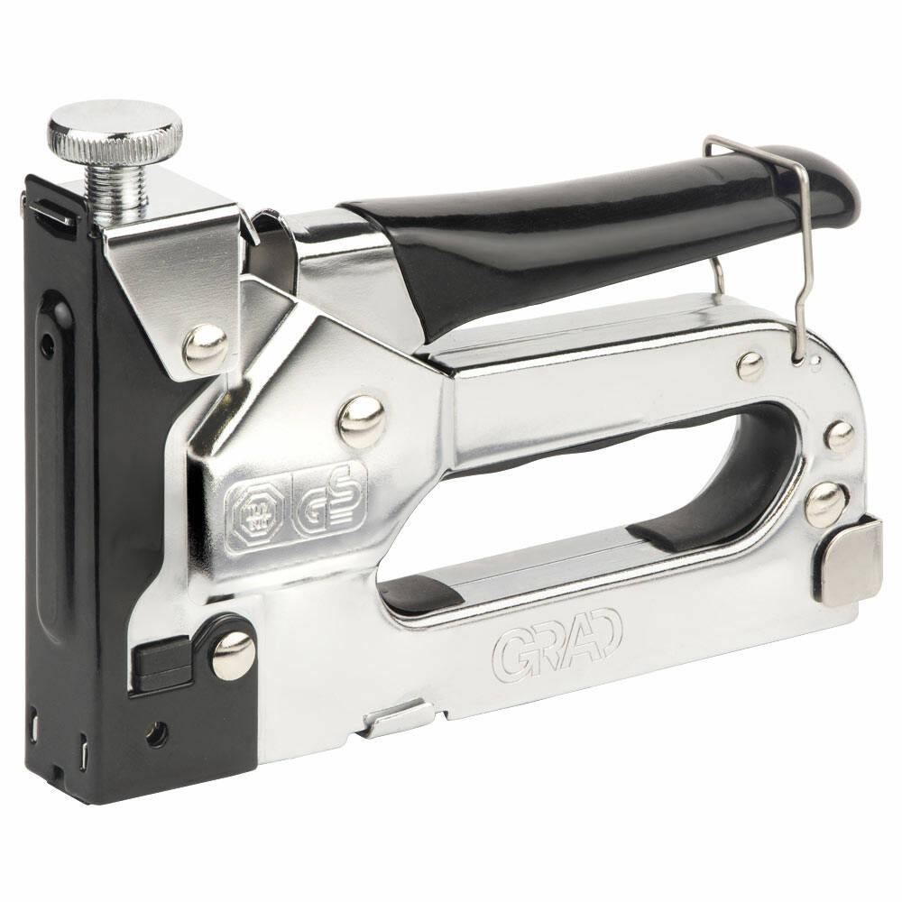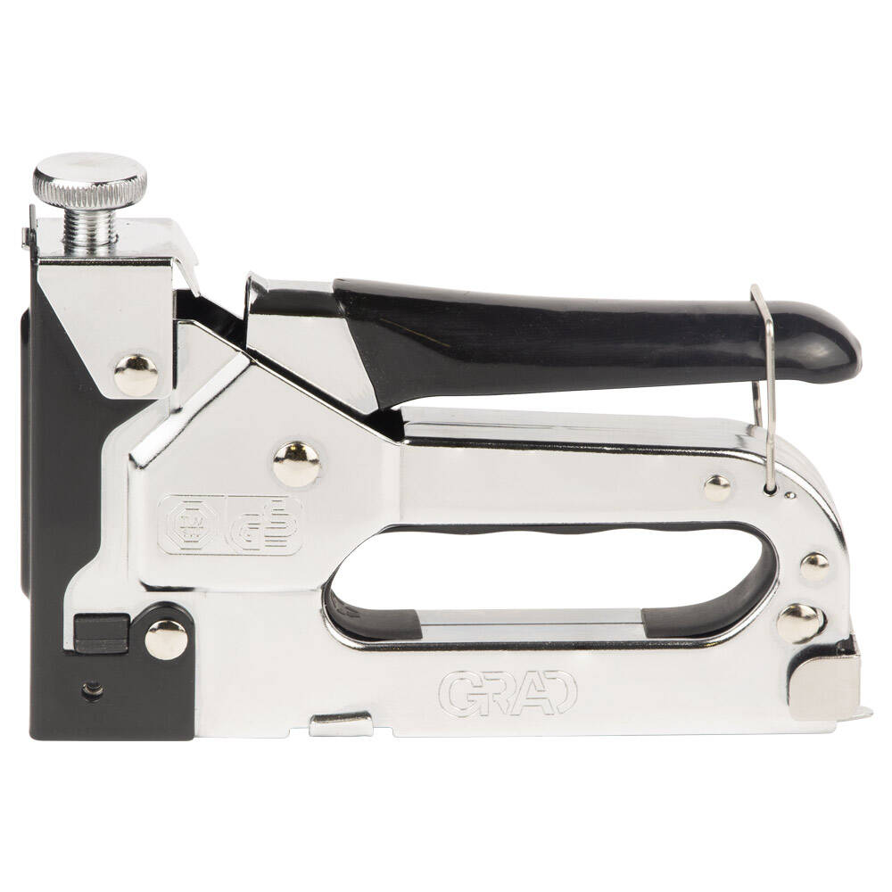 Степлер з регулятором для скоб 4-14мм (хром) GRAD (2821125) створений для прискорення і спрощення монтажних, покрівельних і оббивних робіт. Призначений для швидкого кріплення листового матеріалу (оргаліту, фанери, ДСП, ДВП, плівки, утеплювача) до основи.