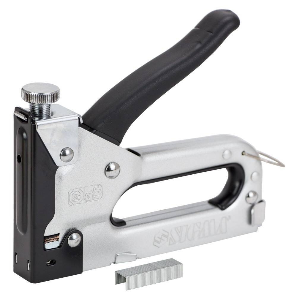 Степлер створений для прискорення і спрощення монтажних, покрівельних і оббивних робіт. Призначений для швидкого кріплення листового матеріалу (оргаліту, фанери, ДСП, ДВП, плівки, утеплювача) до основи.