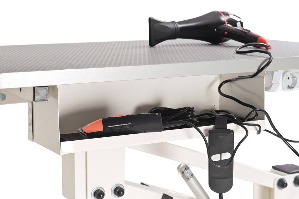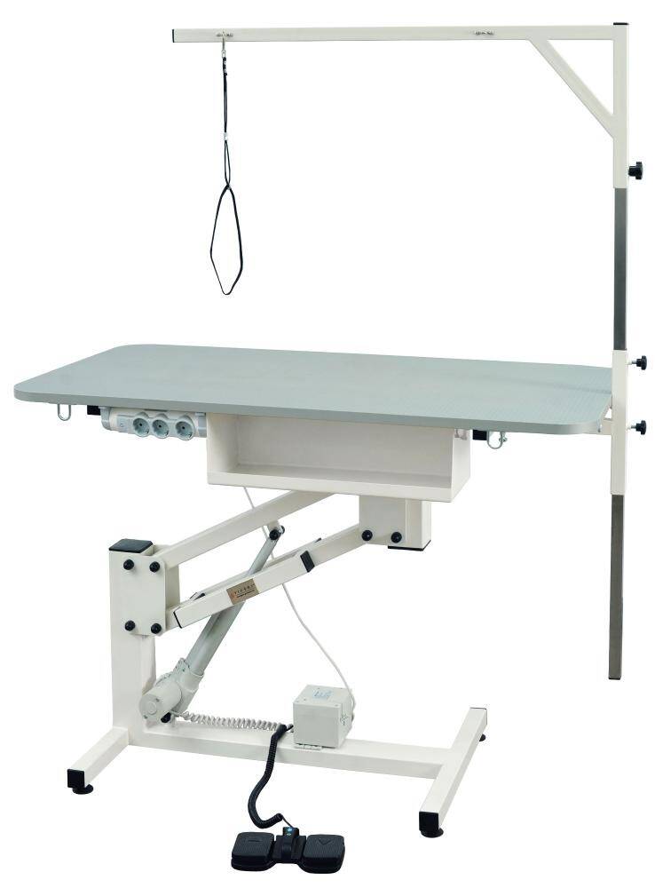 • Електричний підйомник: плавно регулює висоту столу від 45 до 115 см за допомогою пульта керування ногою, роблячи роботу грумера максимально комфортною.