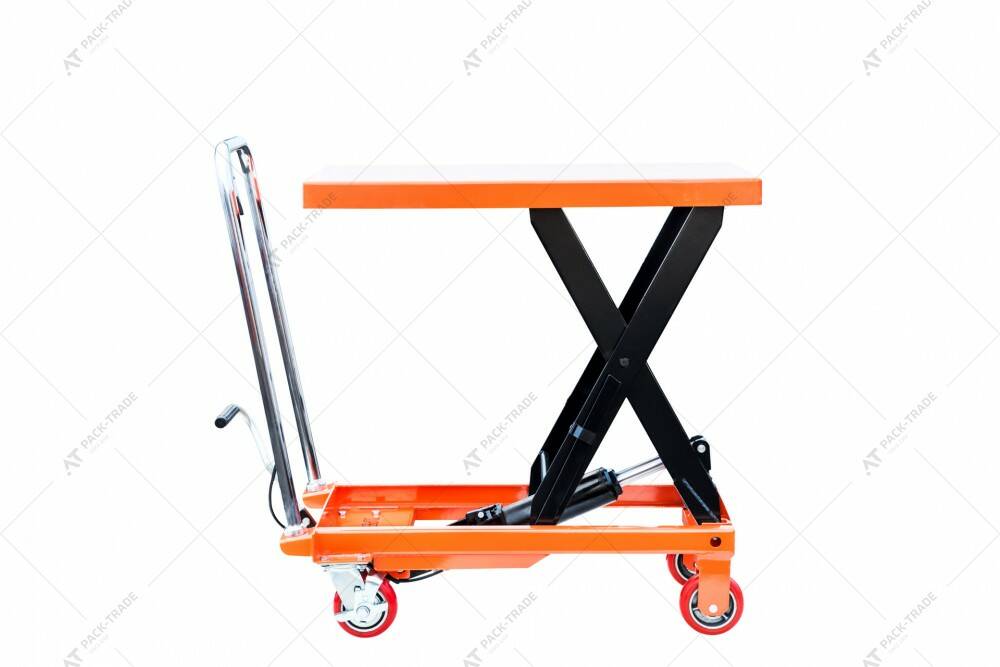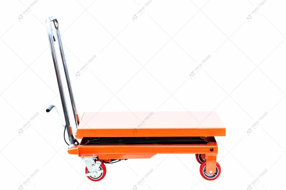 WP500 - модельний ряд візків вантажопідйомністю 500 кг,оснащений одинарним ножичним підйомним механізмом. Стіл призначений для виконання різних транспортних та вантажно-розвантажувальних робіт. Може бути використаний в якості пересувного робочого місця, при виконанні монтажних робіт різного типу складності.