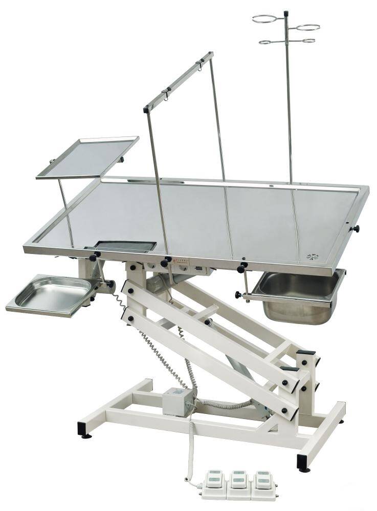 • Регульована стільниця: стільниця виготовлена з нержавіючої сталі та має можливість нахилу в різних площинах, що дозволяє забезпечити оптимальний доступ до операційного поля.