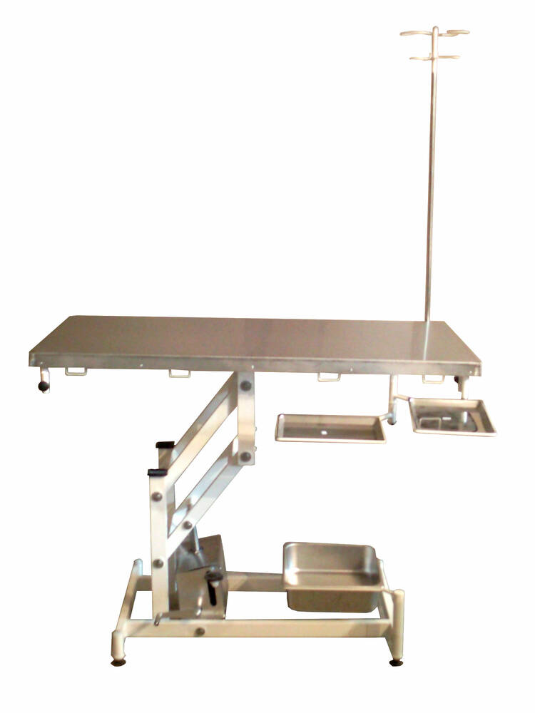• Регульована висота: Завдяки гідравлічному механізму, висоту робочої поверхні можна плавно регулювати, що дозволяє підібрати оптимальне положення для проведення операції на тваринах різного розміру.
