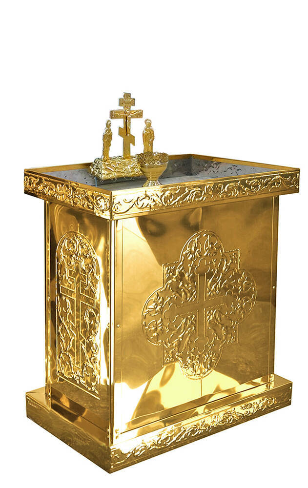 У нашому каталозі можна знайти панахидні столи різних розмірів та форм, прикрашені литтям, оксамитом, з Голгофою, хрестами, орнаментами. Для встановлення свічок передбачені тримачі, а також є варіанти столиків під пісок.