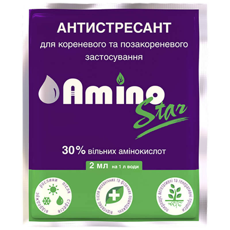AminoStar® – препарат, який має антистресову дію на рослини. Основною діючою речовиною є амінокислоти, які використовуються рослиною для подолання наслідків несприятливих умов вирощування і необхідні для розвитку та росту клітин. Амінокислоти швидко проникають у клітини, беруть участь у синтезі білкових і ростових речовин, поліпшують фізіологічні та обмінні процеси в рослинах, стимулюють швидкий вегетативний ріст та розвиток культур і нівелюють дію стресу.