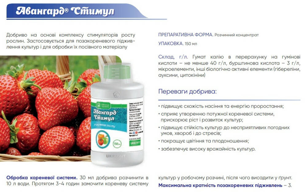 Авангард Стимул - Удобрение на основе комплекса стимуляторов роста растений. Применяется для внекорневой подкормки культур и для обработки их посевного материала.