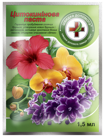 Цитокининовая паста - препарат на основе цитокинина - фитогормона биологического происхождения, который стимулирует деление клеток растения, гарантирует пробуждение спящих и образование новых почек и цветоносов, активирует рост боковых побегов, способствует получению "деток". Препарат является мощным регулятором роста, который влияет на физиологические процессы растений. Больше всего применяется в домашнем цветоводстве.