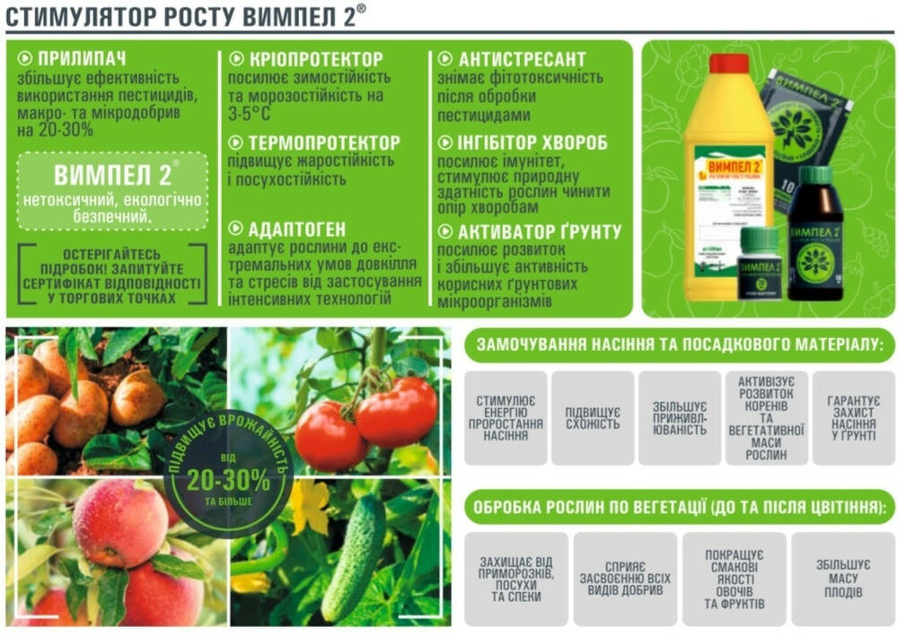 Вимпел 2 - Комплексный природно-синтетический препарат контактно-системного действия для обработки семян и вегетирующих растений. Нетоксичен, экологически безопасен.