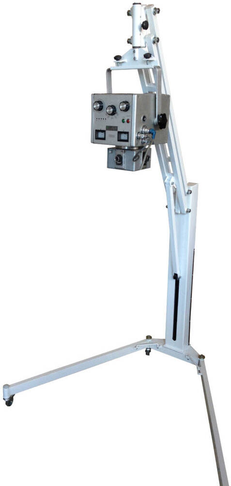 Стійка-підйомник складається з міцної металевої основи та регульованої по висоті стійки. Конструкція стійки дозволяє фіксувати рентген-апарат у потрібному положенні.