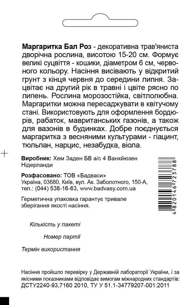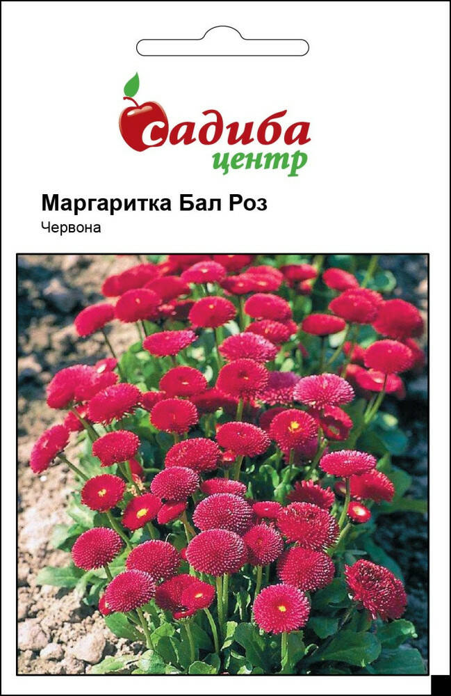 Маргаритка Бал Роз - декоративна трав'яниста дворічна рослина, висотою 15-20 см. Формує великі суцвіття - кошики, діаметром 6 см, червоного кольору. Насіння висівають у відкритий грунт з кінця червня до середини липня. Зацвітає на другий рік в травні і цвіте рясно по липень. Рослина морозостійка, світлолюбна. Маргаритки можна пересаджувати в квітучому стані. Використовують для оформлення бордюрів, рабаток, мавританських газонів, а також для вазонів в будинках. Добре поєднується маргаритка з весняними культурами - гіацинт, тюльпан, нарцис, незабудка, віола.