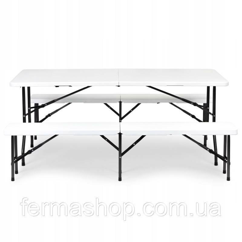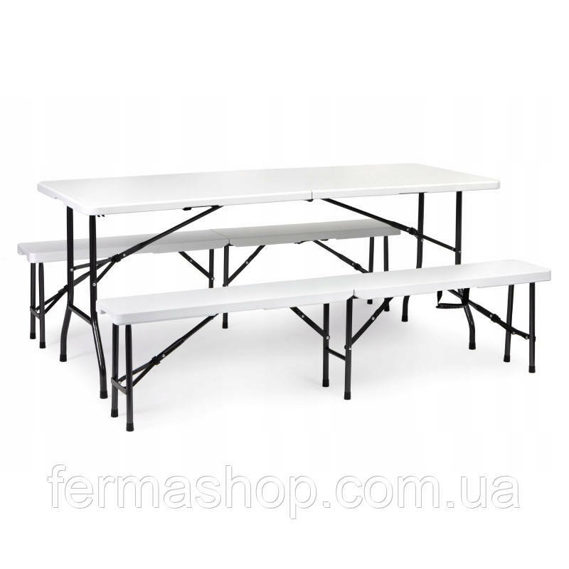Стол раскладной для пикника, садовый 180см + 2 лавки 180см белый (Польша)