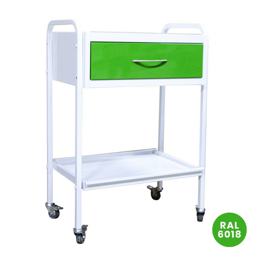 • Мобільність — колеса з фіксаторами дозволяють легко переміщати столик у межах робочої зони.
