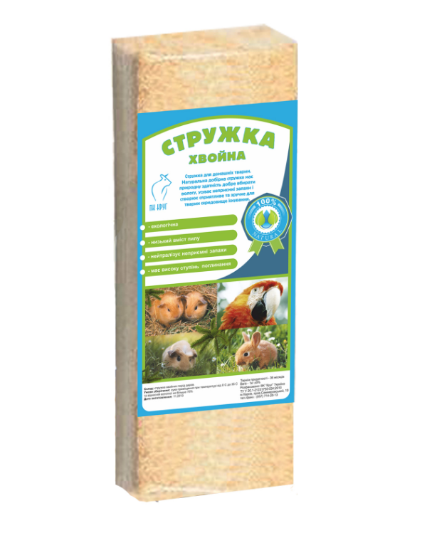 "Стружка хвойна брикетована" - гігієнічна підстилка для гризунів і птахів, 0.5кг (Круг)