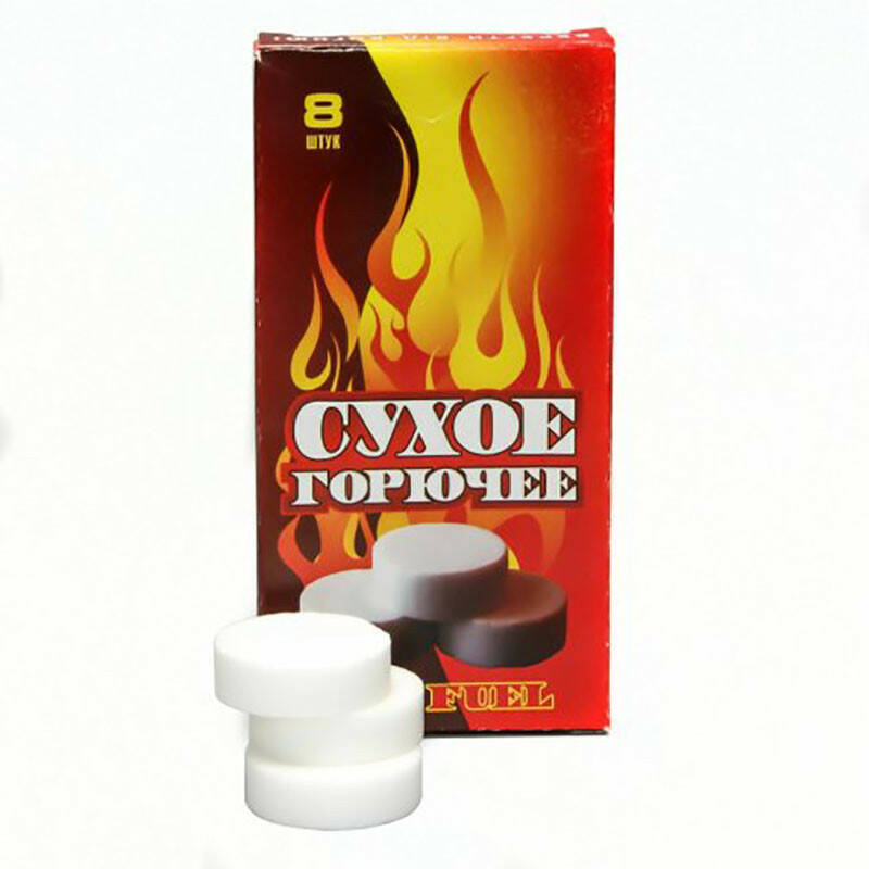 Покласти таблетку сухого пального на вогнетривку підставку та підпалити, при необхідності підкладати нові таблетки.