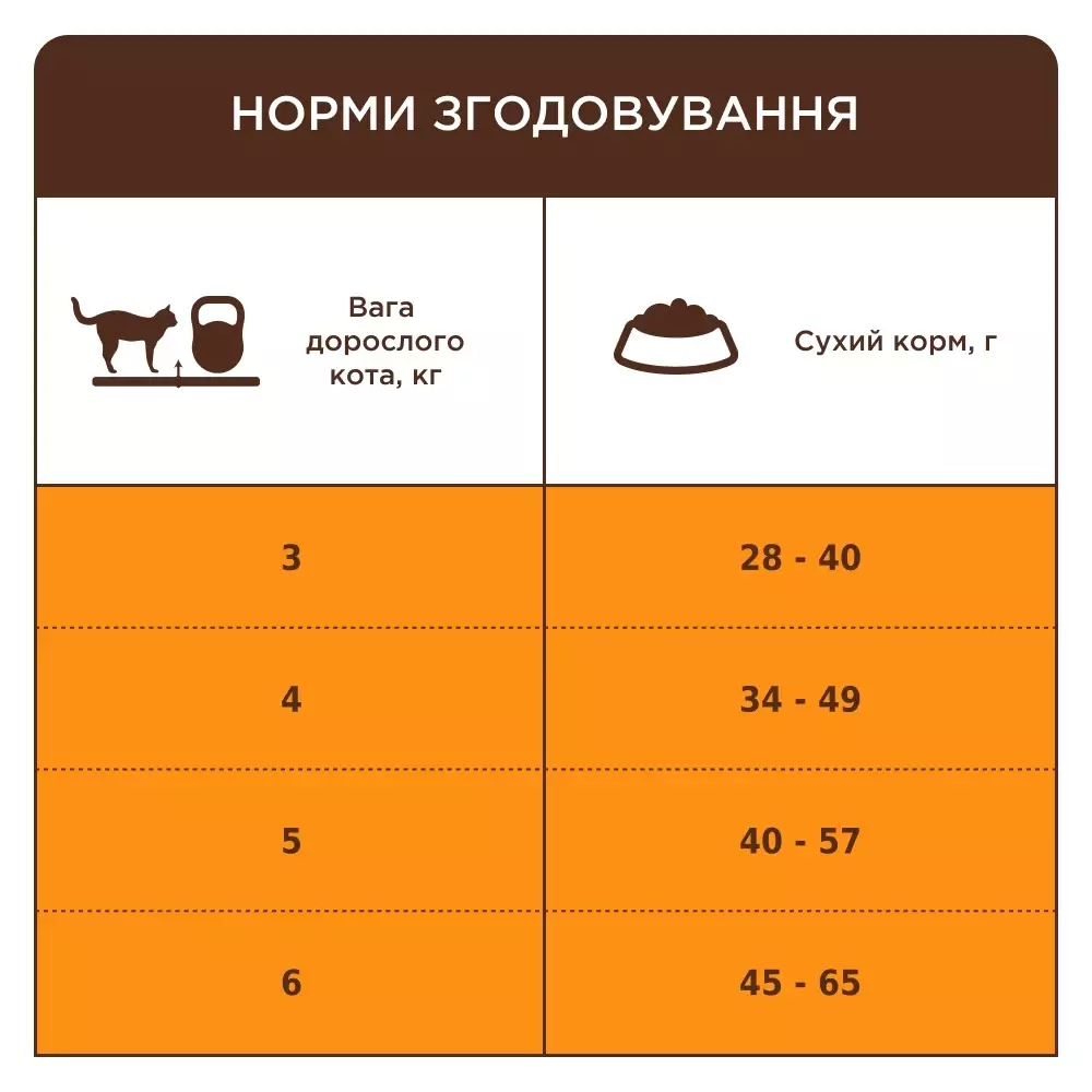 Корм потрібно вводити в раціон поступово (принаймні впродовж перших 5 днів). Забезпечити тварині постійний доступ до чистої та свіжої питної води. Індивідуальні норми годування тварини можуть варіюватися, залежно від віку, породи, рівня активності та довкілля. Більш детальні пропорції див. на фото 3 та на упаковці.