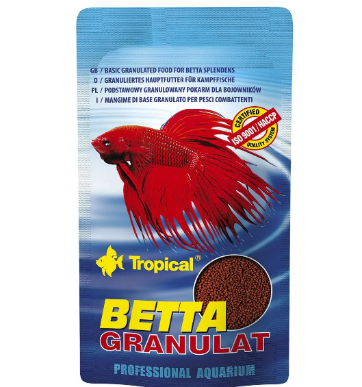Betta Granulat - це повноцінний гранульований корм для півників і інших лабіринтових риб. Завдяки оптимально підібраному складу і розміру гранул, цей корм охоче поїдається всіма півниками, гурамі, макроподами і колізами. При регулярному вживанні посилює забарвлення риб. Корм виготовлений із застосуванням найсучасніших технологій, що забезпечують кращу якість продукту. Добавка цеоліту сприятливо впливає на травну систему і видалення токсинів з організму риб.