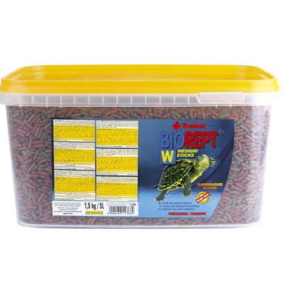Biorept W - це багатокомпонентний корм, призначений для щоденного годування всеїдних і м'ясоїдних земноводних і водних черепах. Містить добавку ракоподібних, зокрема гамаруса, що збагачує корм цінним білком, хітином і поліненасиченими жирними кислотами (омега-3 і омега-6). Добавка цеоліту сприятливо впливає на травну систему і видалення токсинів з організму.