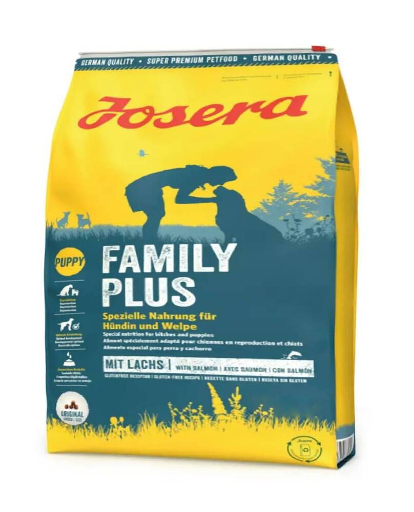 JOSERA Family Plus смачний корм для наших майбутніх собак-матерів та цуценят: спеціальна рецептура не тільки покриває особливу потребу сук з останньої третини вагітності аж до кінця періоду вигодовування, а й забезпечує цуценят ще в череві матері та під час вигодовування всіма необхідними поживними речовинами. Після цього цуценятам можуть згодовуватися крокети розмочені у воді для того, щоб полегшити цуценятам перехід на твердий корм.