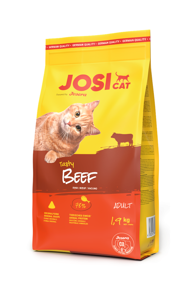 JosiCat Tasty Beef смачна їжа для котів, які люблять яловичину. Корм добре підходить для котів з нормальною або низькою активністю.