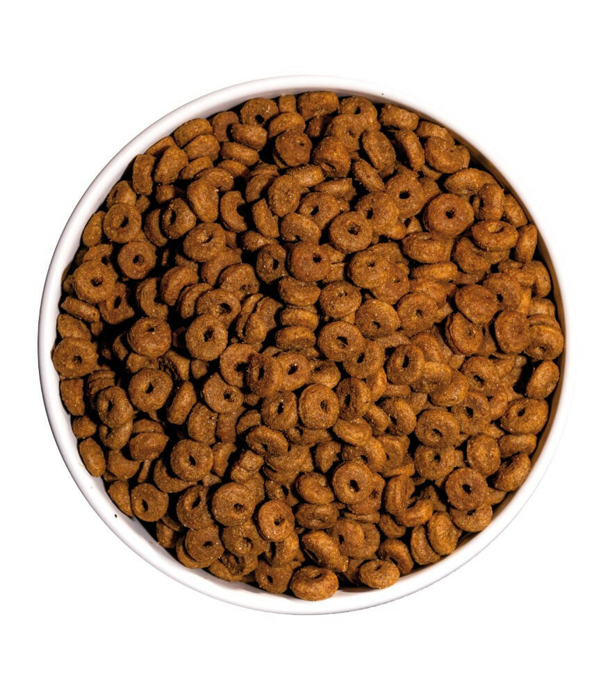 Інгредієнти: М'ясо 36% (дегідратоване м'ясо 26%, свіжа курка* 10% до екструзії), цільна кукурудза* (20%), курячий жир, цільна пшениця* (9%), цільний ячмінь* (7%), цільний зелений горошок*(5%) кукурудзи, пивні дріжджі* (1,5%), гідролізований курячий білок, дегідратована риба, яблуко* (1%), лососева олія, м'якоть буряку, фрукто- і маннанолігосахариди, ароматичні рослини 0,02% (фенхель звичайний) шидігера. *Натуральні інгредієнти.