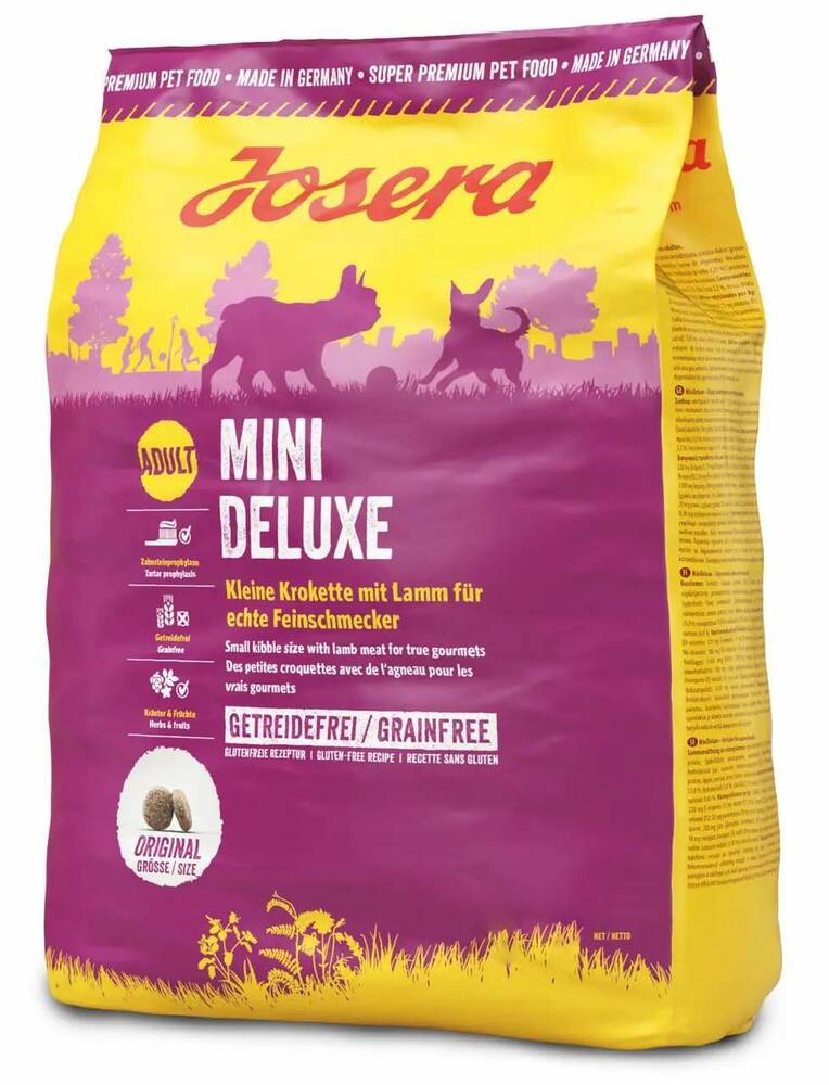 JOSERA MiniDeluxe цей корм пропонує нашим маленьким шибеникам смачну та водночас дуже добре перетравну їжу без зернових, замість цього з овочами, травами та плодами і великою кількістю м’яса ягня.