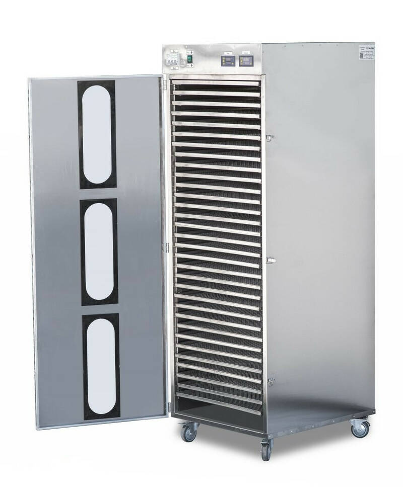 Сушильна шафа «М-3» укомплектована лотками з бортиками (підходить для сушіння продуктів округлої форми.) або деками (для сушіння пастили чи інших рідких продуктів). – 32 лотки.