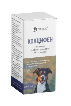 Суспензія Кокцифен для профілактики та лікування гельмінтозів та кокцидіозів у собак і котів 25 мл, Продукт