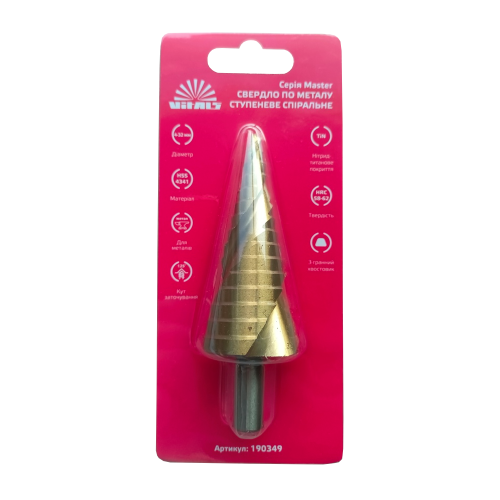 Свердло ступінчасте спіральне 4-32 мм Vitals Master є універсальним інструментом для свердління отворів різного діаметру в різних матеріалах. Основні особливості цього свердла включають: