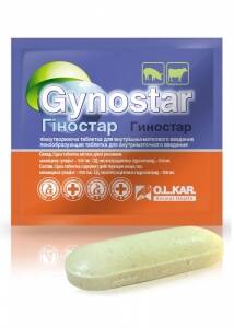 Гіностар ( таблетки для внутрішньоматкового введення) Опис Таблетки, сферичної капсуловидної форми, з фаскою, гладкою двоопуклою поверхнею, від світло-жовтого до жовтого кольору. На поверхні таблеток допускаються вкраплення. Склад 1 таблетка містить діючі речовини: неоміцин сульфат 350 000 ОД; окситетрациклін гідрохлорид 500 мг. Фармакологічні властивості Гіностар - комплексний препарат широкого спектру бактерицидної та бактеріостатичної дії. Неоміцин - аміноглікозидний антибіотик, який діє бактерицидно на аеробні бактерії, ефективний по відношенню до грампозитивних і деяких грамнегативних бактерій (E. coli, Salmonella spp., Klebsiella spp., Proteus spp., Shigella spp., Enterobacteriae spp., Staphylococcus spp.) та коків. Неоміцин проявляє антимікробну дію шляхом гальмування синтезу білка в рибосомах. Окситетрациклін - бактеріостатичний антибіотик, механізм дії якого полягає у порушенні синтезу білка при його взаємодії з рибосомами, а також у зменшенні проникності цитоплазматичної мембрани чутливих мікроорганізмів. Препарат володіє широким спектром дії щодо грампозитивних та грамнегативних мікроорганізмів, а саме: Streptococcus spp., Clostridium spp., Corynebacterium spp., Brucella spp., Haemophilus spp., E. coli, Pasteurella spp., Klebsiella spp., Fusobacterium spp., Salmonella spp., а також найпростіших (Protozoa), мікоплазм (Mycoplasma spp.), рикетсій (Rickettsia spp.) та хламідій (Chlamydia). Застосування Профілактика та лікування післяродових внутрішньоматкових інфекцій у корів та свиней. Дозування Препарат застосовують внутрішньоматково у наступних дозах: корови 1-3 таблетки на тварину через кожні 48 годин до повного одужання. свиноматки: 1-2 таблетки на тварину через кожні 48 годин до повного одужання. При важких формах захворювання таблетки вводять через кожні 24 години. Процедуру повторюють тричі, при необхідності більше. Протипоказання Не застосовувати препарат при підвищеній індивідуальній чутливості до складових препарату. Застереження Забій тварин на м'ясо дозволяється через 6 діб після останнього застосування препарату; молоко дозволяється використовувати в їжу людям не раніше, ніж через 4 доби після останнього введення препарату. Отримане до зазначеного терміну м'ясо та молоко згодовують непродуктивним тваринам або утилізують, залежно від висновку лікаря ветеринарної медицини. Форма випуску По 1 таблетці у пакетах з плівки полімерної. Зберігання Сухе, темне, недоступне для дітей місце при температурі від 10° до 25°С. Не зберігати разом з харчовими продуктами, напоями та кормами для тварин. Термін придатності - 3 роки з дати виготовлення. Аналог супозиторіїв внутріматочних Гінобіотика