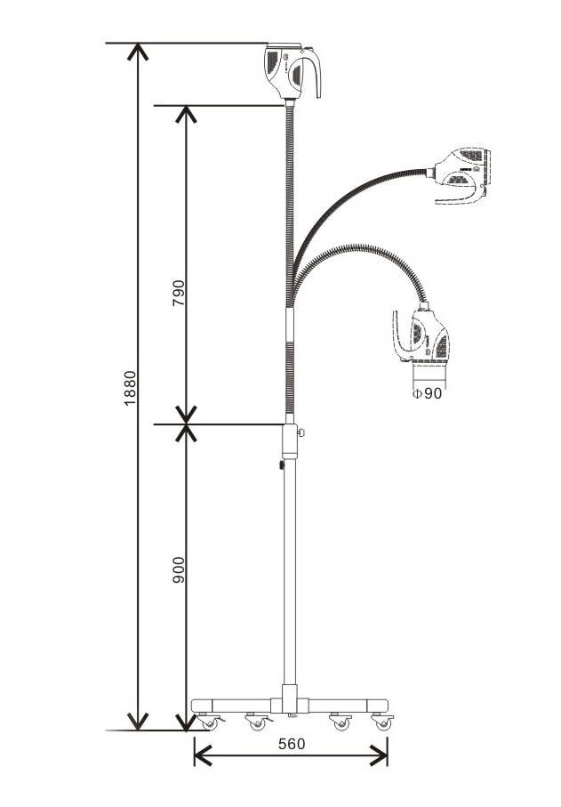 Освітлювальний блок світильника монтується на мобільну стійку з п'ятиколісною основою, що гарантує стійкість та легкість переміщення по медичному кабінету.