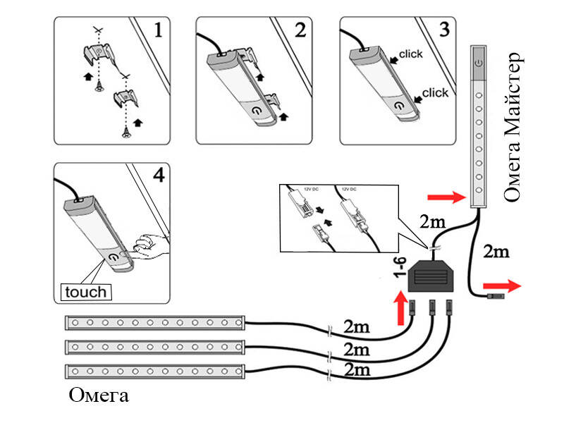 Світильник світлодіодний меблевий накладний Омега Майстер 1200мм 12V 6500К LEDUA