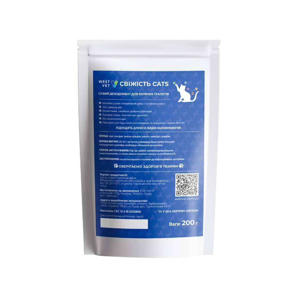 «Свіжість Кетс» Сухий дезодорант для котячих туалетів 200грам