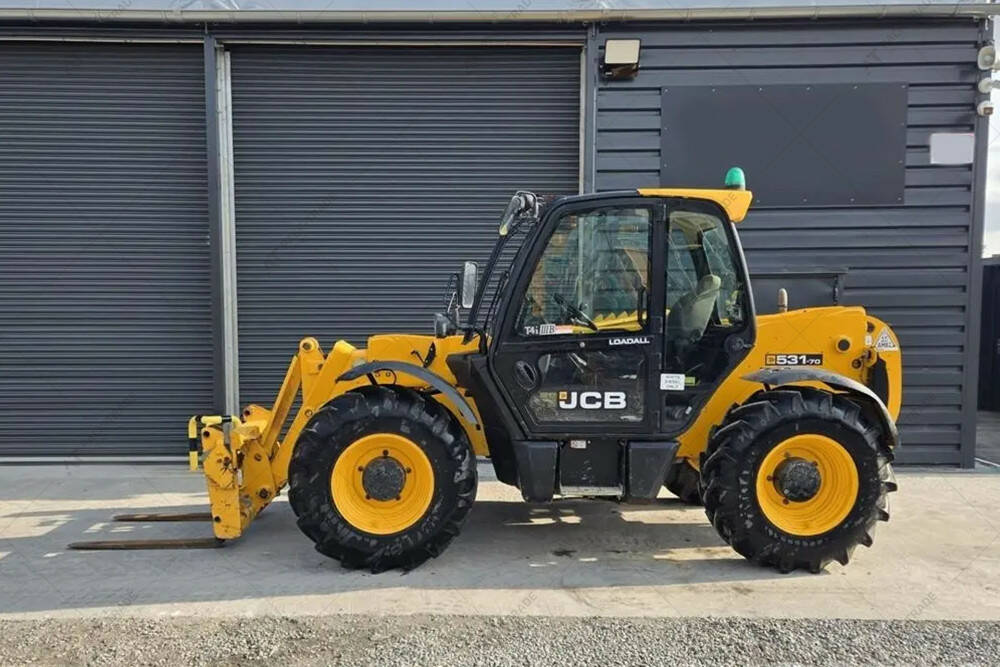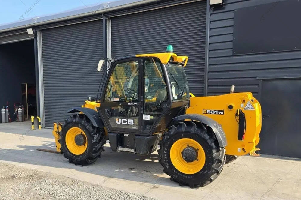 Навантажувач б/в JCB 531-70, 2015 р/в, з напрацюванням 3639 м/г. Двигун — 81 кВт. Вантажопідйомність — 3100 кг. Висота підйому — 7 м. Джойстик. Гума — 15.5/80-24. Додаткове робоче освітлення спереду. Камера заднього огляду. Захист лобового скла.