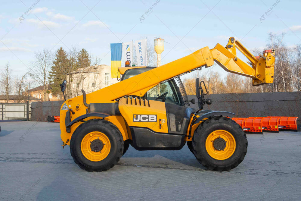Навантажувач б/в JCB 531-70, 2018 р/в, з напрацюванням 3092 м/год. Двигун 55 кВт Turbo. Вантажопідйомність 3100 кг. Висота підйому 7 м. Габаритна висота навантажувача 2,5 м. Шини 15,5/80-24.