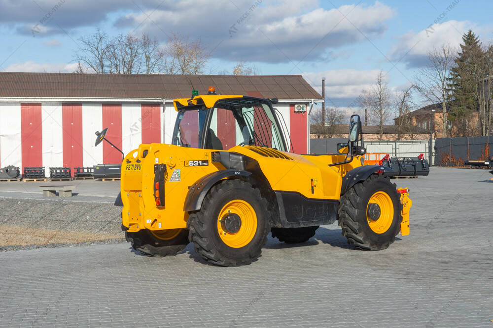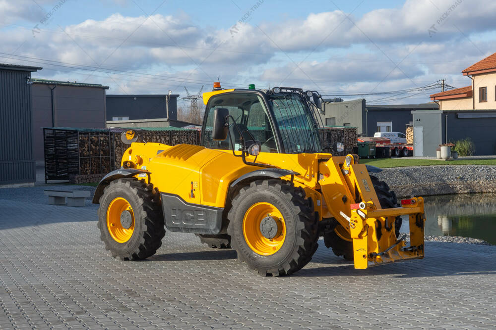 Навантажувач б/в JCB 531-70, 2021 р/в, з напрацюванням 1341 м/год. Двигун 55 кВт Turbo. Вантажопідйомність 3100 кг. Висота підйому 7 м. Вага 7720 кг. Шини 15.5/80-24. Джойстик. Задній гідравлічний зчіпний пристрій, задній додатковий гідравлічний вихід, гідравлічні гальма, розетка для підключення причепа. Камера заднього огляду, захист лобового скла, нижній захист КПП та карданів, захист розподільника, додаткове переднє робоче світло.