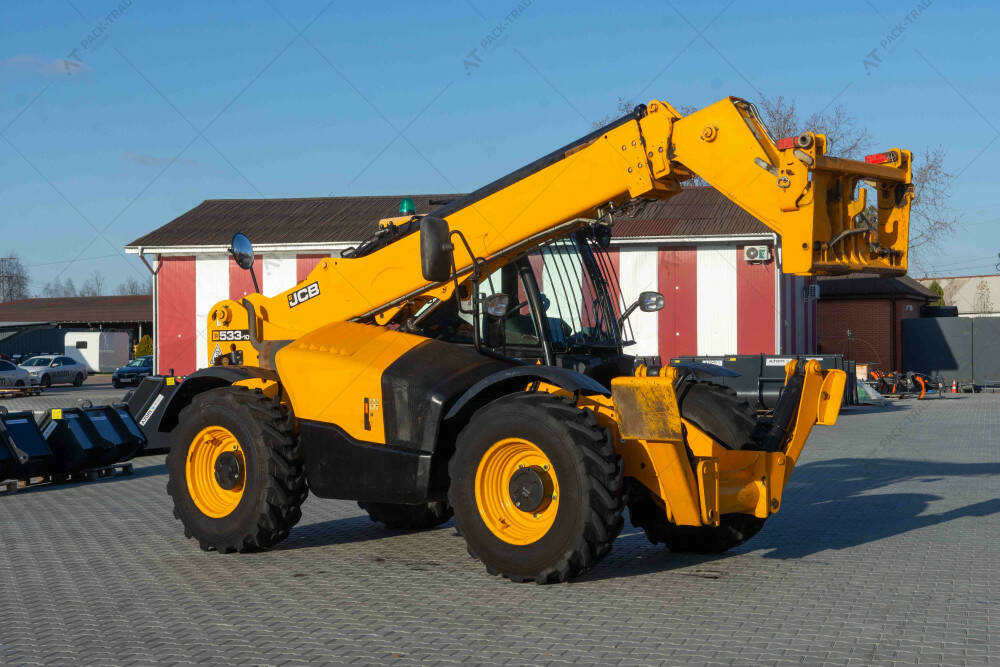 Навантажувач б/в JCB 533-105, 2017 р/в, з напрацюванням 4614 м/год. Вантажопідйомність – 3300 кг. Висота підйому – 10,5 м. Габаритна Висота-2,5 м. Ширина-2,35 м. Шини: 15.5/80-24. Кондиціонер.