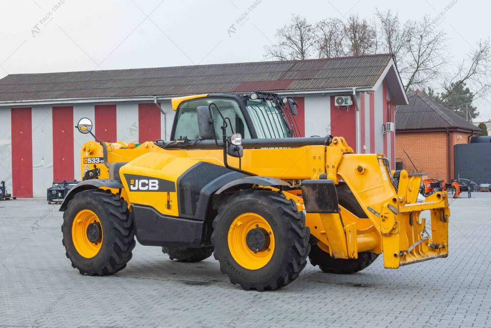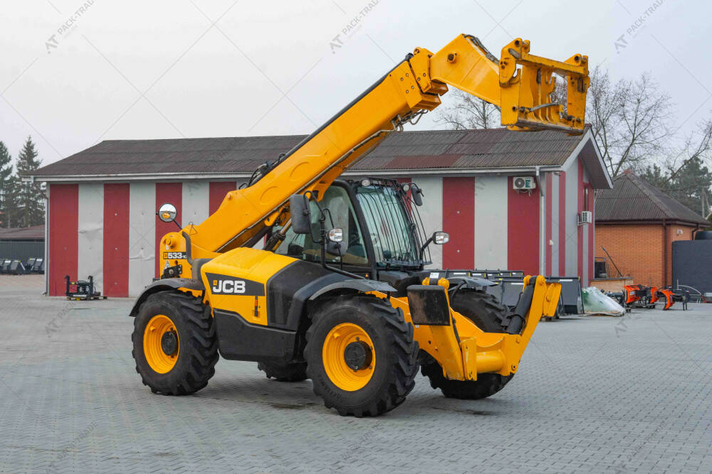 Навантажувач б/в JCB 533-105, 2018 р/в, з напрацюванням 3721 м/год. Вантажопідйомність – 3300 кг. Висота підйому – 10,5 м. Шини 15.5/80-24. Кондиціонер.